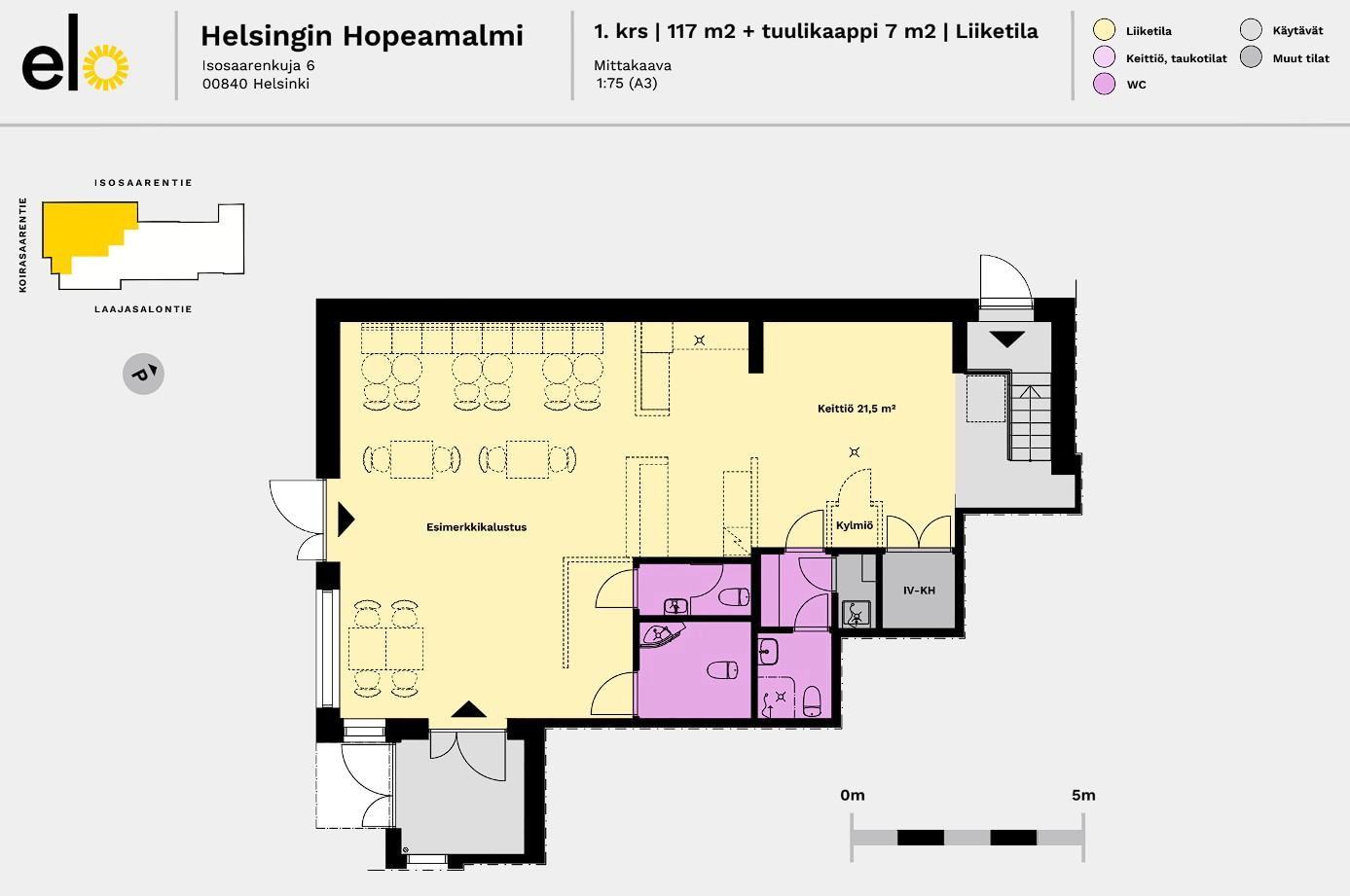 Vuokrataan Helsingin Laajasalosta 117 m² liiketila uudiskohteesta. Tilassa on tekniset varaukset ravintolalle. Kohde valmistuu keväälle 2026.